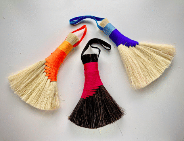 During the workshop, you’ll make up to three brushes, working across two different brush forms. You’ll also explore decorative details and finishing touches, allowing you to personalise each piece so that no two brushes are ever the same. The colourful thread not only adds character and individuality, but also strength and durability.
