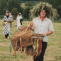 Lewis Prosser is an absurdist basket-maker based in Penarth, whose practice revolves around the interplay of objecthood and entertainment. Informed by civic traditions of the British Isles, he constructs moments of wonder and rebellion through material culture and performance.